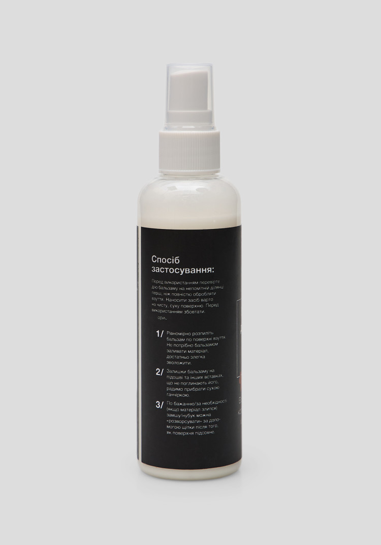 1. Рівномірно розпиліть бальзам по поверхні взуття. Не потрібно бальзамом заливати матеріал, достатньо злегка зволожити.