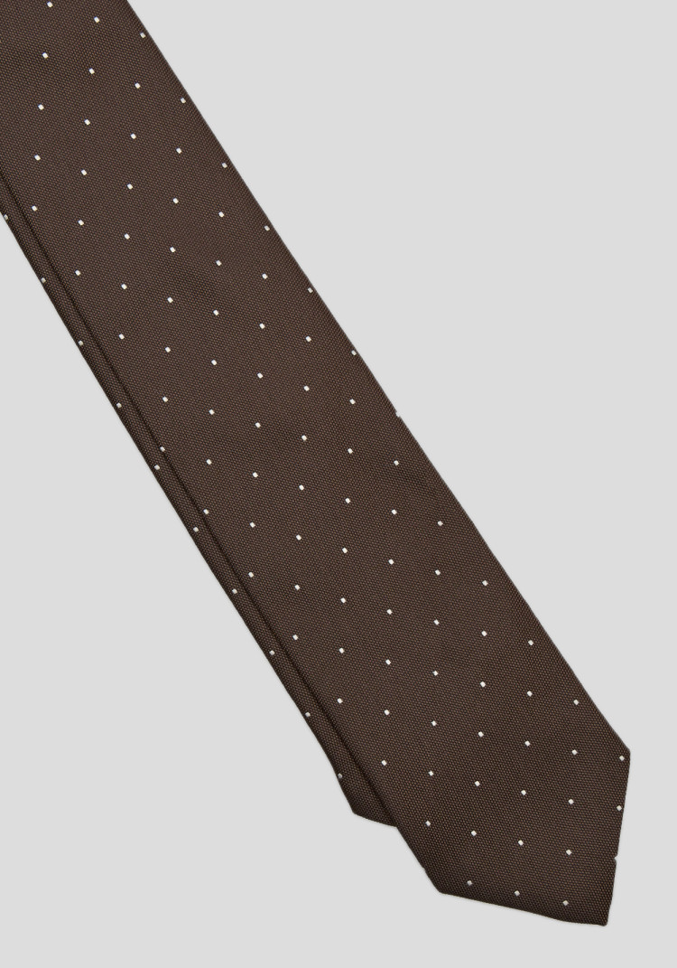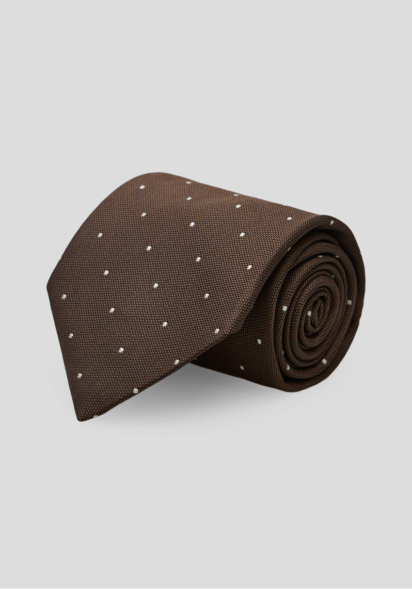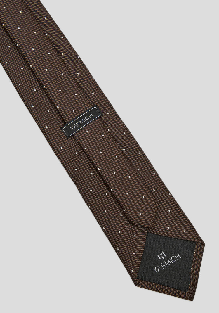 Чоловіча краватка коричнева з дрібною білою крапкою