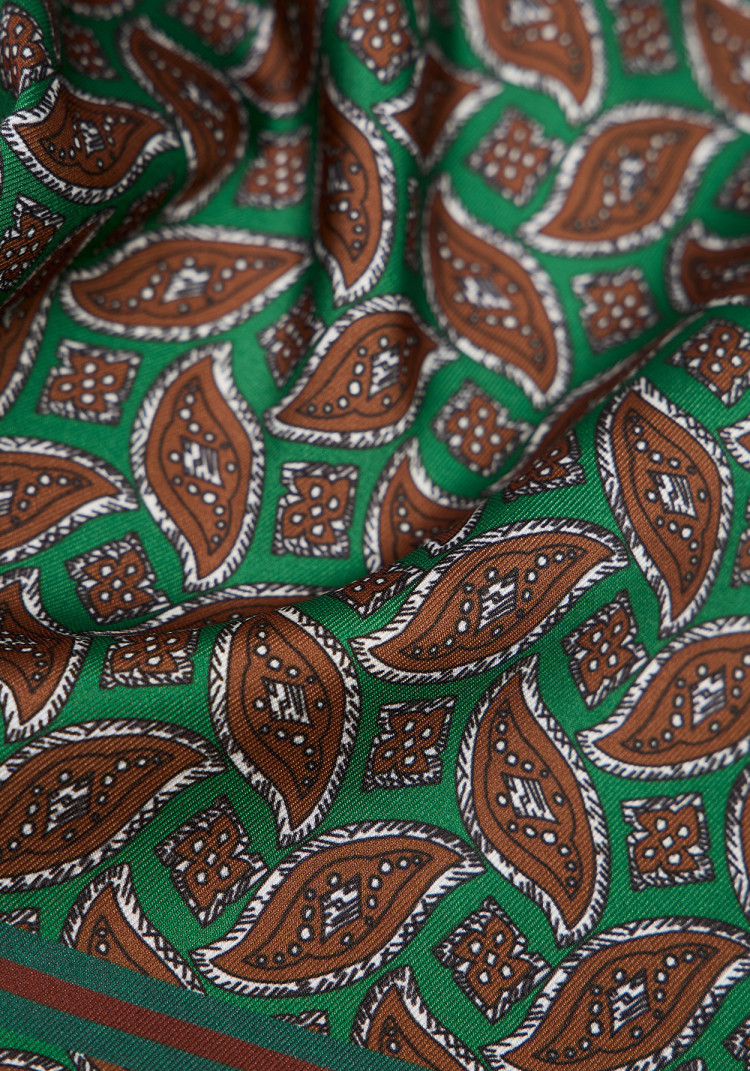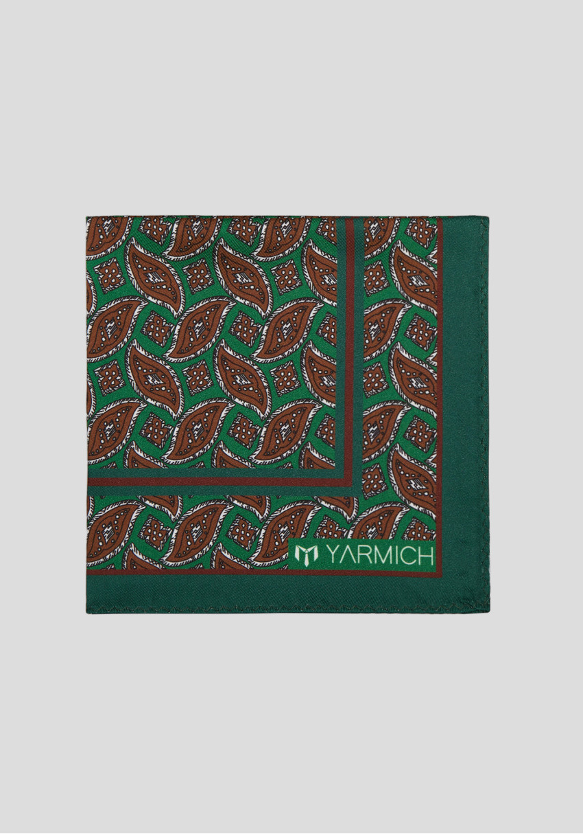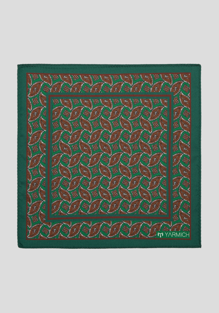 Чоловіча хустинка темно-зелена з принтом підкреслить ваш смак та приверне увагу на будь-якому заході. Темно-зелений колір додає нотку елегантності, а цікавий принт робить її унікальною. Ідеальна для поєднання як з класичним костюмом, так і з повсякденним вбранням. Відчуйте себе впевнено з Yarmich!