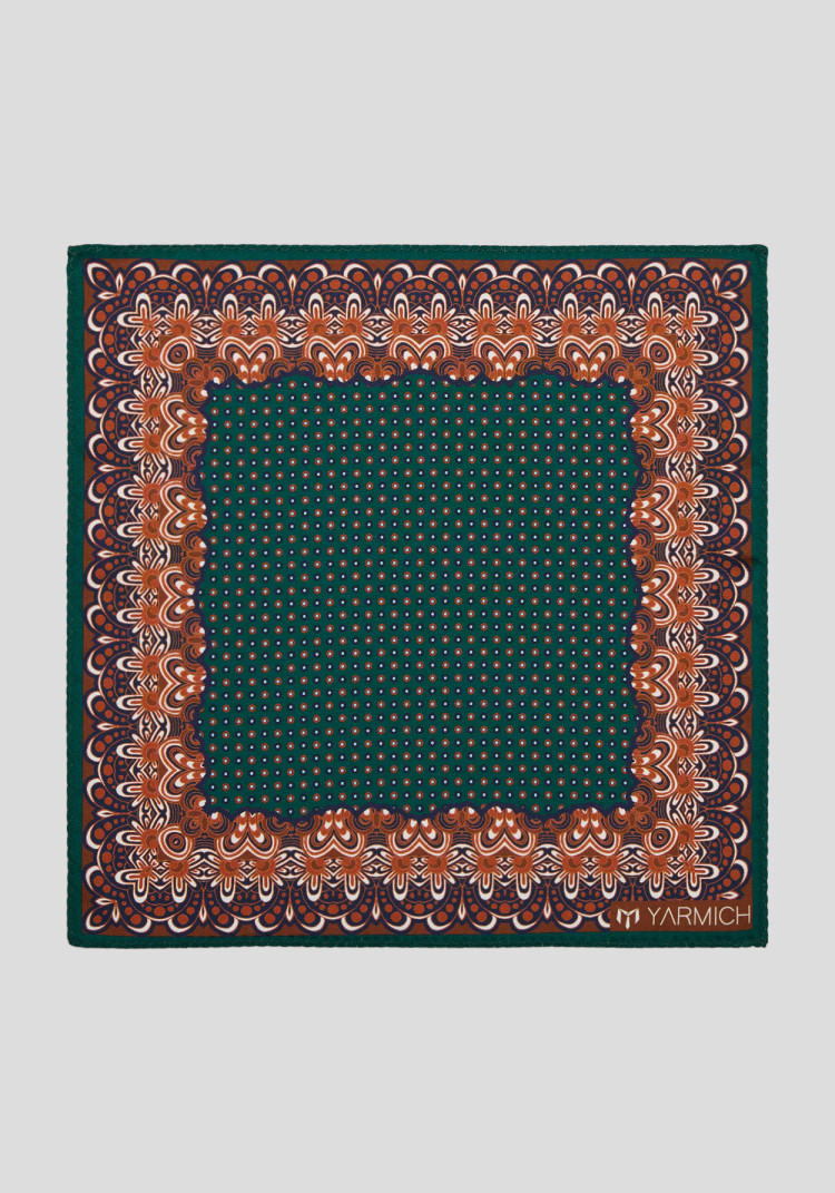 Зелена хустинка з коричневим принтом — ідеальний аксесуар, щоб додати нотку елегантності до твого образу. Уяви, як вона підкреслює твою індивідуальність на діловій зустрічі чи святковому заході. Легка, м'яка тканина дарує відчуття комфорту і впевненості.