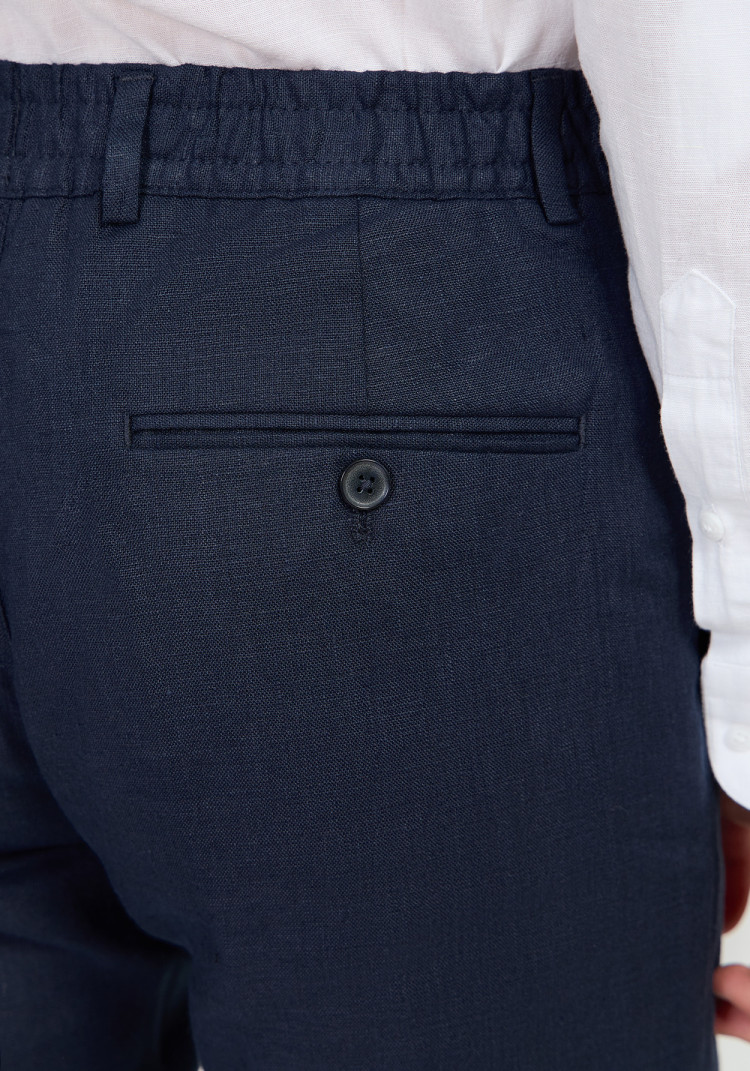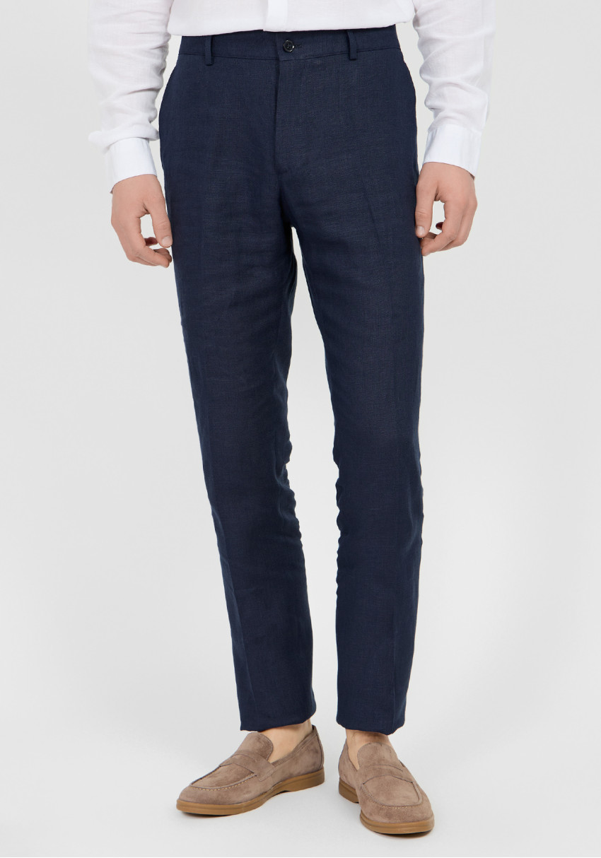 Темно-сині лляні брюки не лише виглядають шикарно, але й дарують неймовірне відчуття легкості. Ідеальні для будь-якої погоди, вони дозволяють шкірі дихати, тому ти завжди почуватимешся свіжо. Вони бездоганно поєднуються з улюбленими футболками чи сорочками, підкреслюючи твій унікальний стиль.