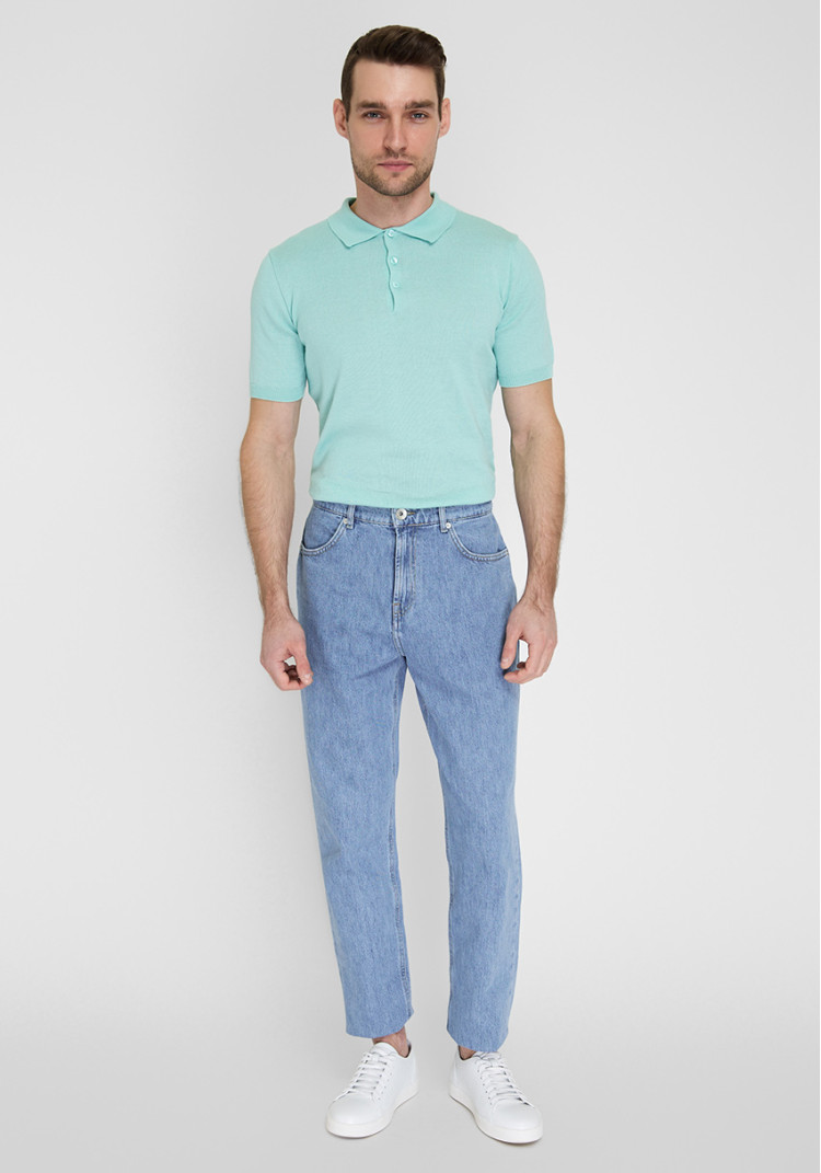 Світло-синій колір та прямий крій дозволяють експериментувати зі стилем: одягніть їх із білою футболкою та кросівками для легкого луку, або ж додайте сорочку та класичні туфлі для більш витонченого образу.