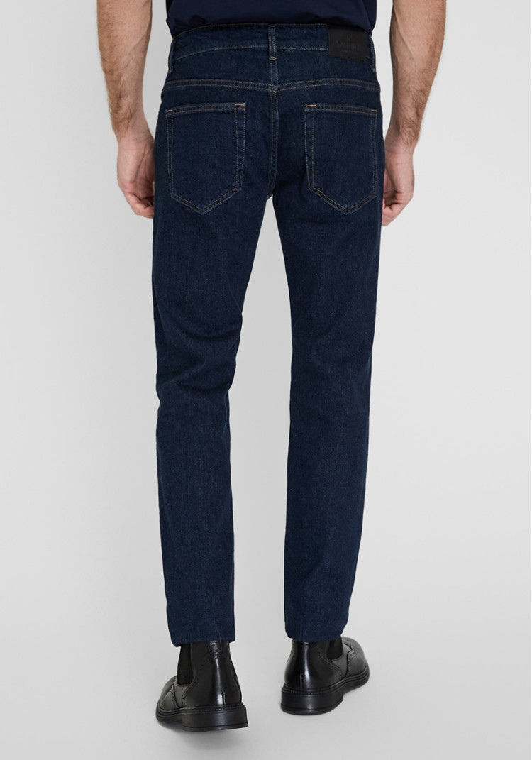 Джинси темно-сині напів-звужені Straight Fit - твоє комфортне рішення для будь-якого сезону. Зроблені зі 100% бавовни, вони дихають разом з тобою, а середня посадка та крій Straight Fit роблять їх універсальними. Ідеальні для офісного стилю у поєднанні з класичною сорочкою або неформального виходу - просто додай легкий светр чи футболку.