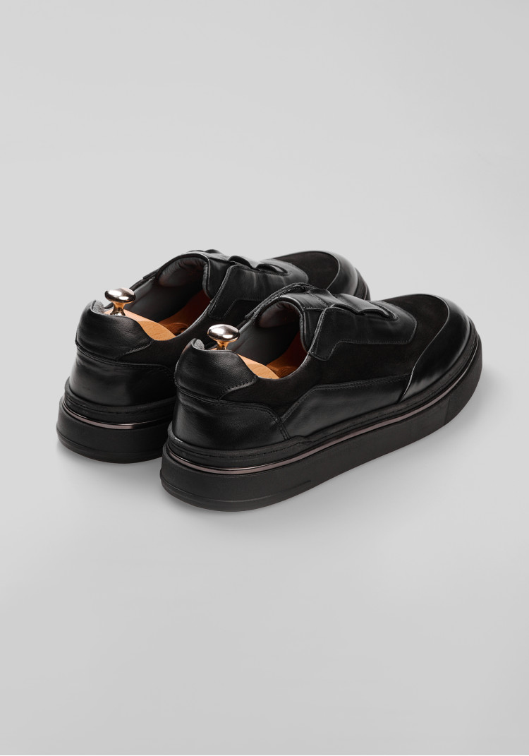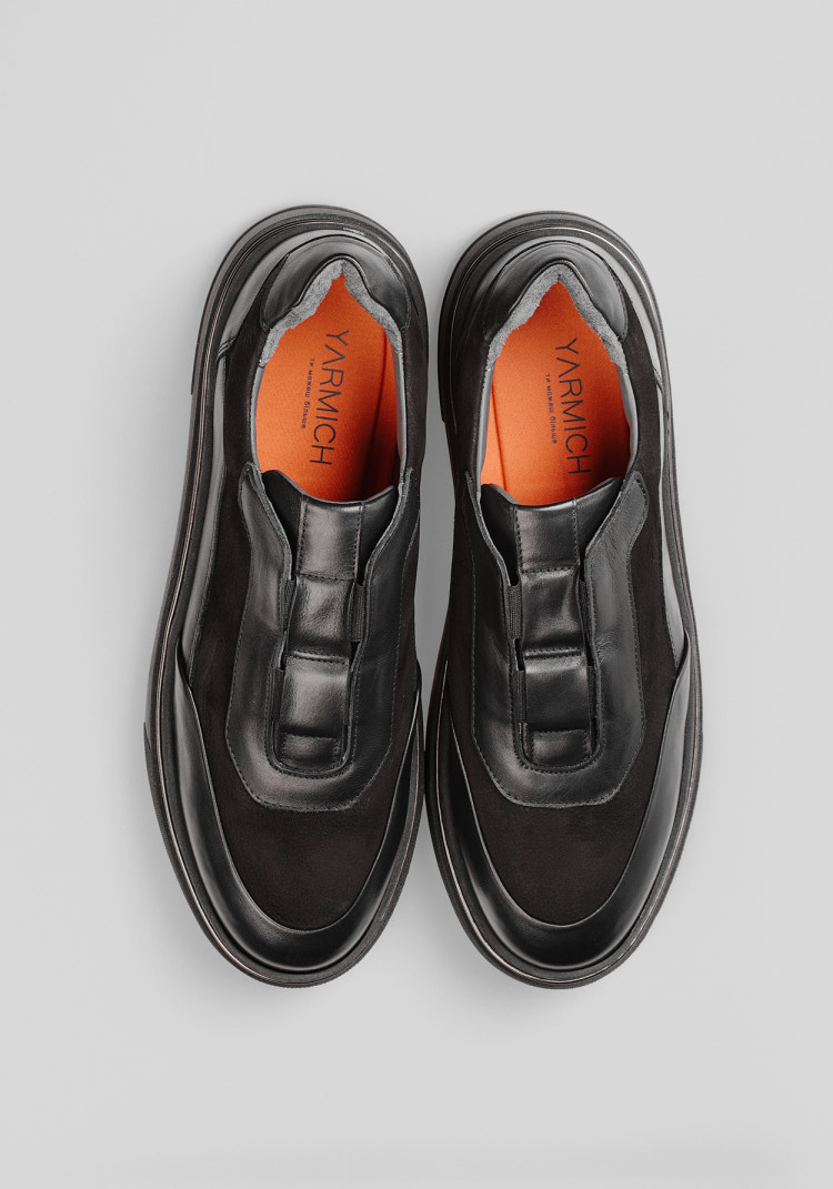 Чоловічі кросівки з замшевою союзкою від YARMICH - це варіант, на який варто звернути увагу. Виготовлені з якісної телячої шкіри та маючи універсальний чорний колір, вони легко адаптуються до будь-якого сезону.