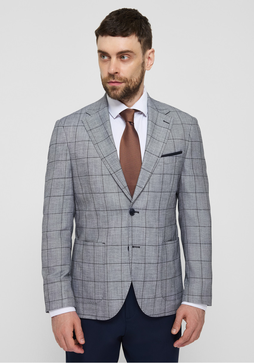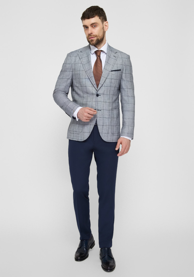 Чоловічий костюм з льону в світло-синьому кольорі з клітинкою поєднує в собі комфорт і стиль. Легка та дихаюча тканина ідеальна для теплих сезонів, забезпечуючи прохолоду та зручність. Світло-синій відтінок додає образу свіжості та елегантності, а клітинка створює сучасний та модний вигляд. Цей костюм підходить для неформальних зустрічей, літніх весіль та святкових заходів, гарантуючи вам вишуканий і привабливий вигляд.