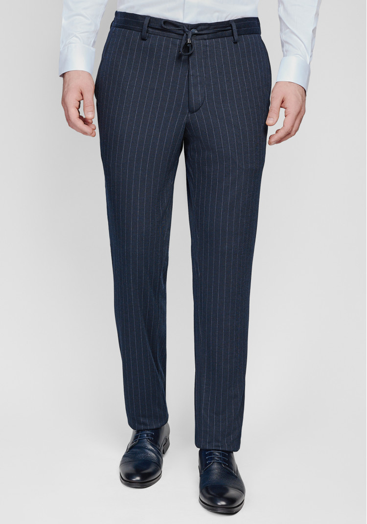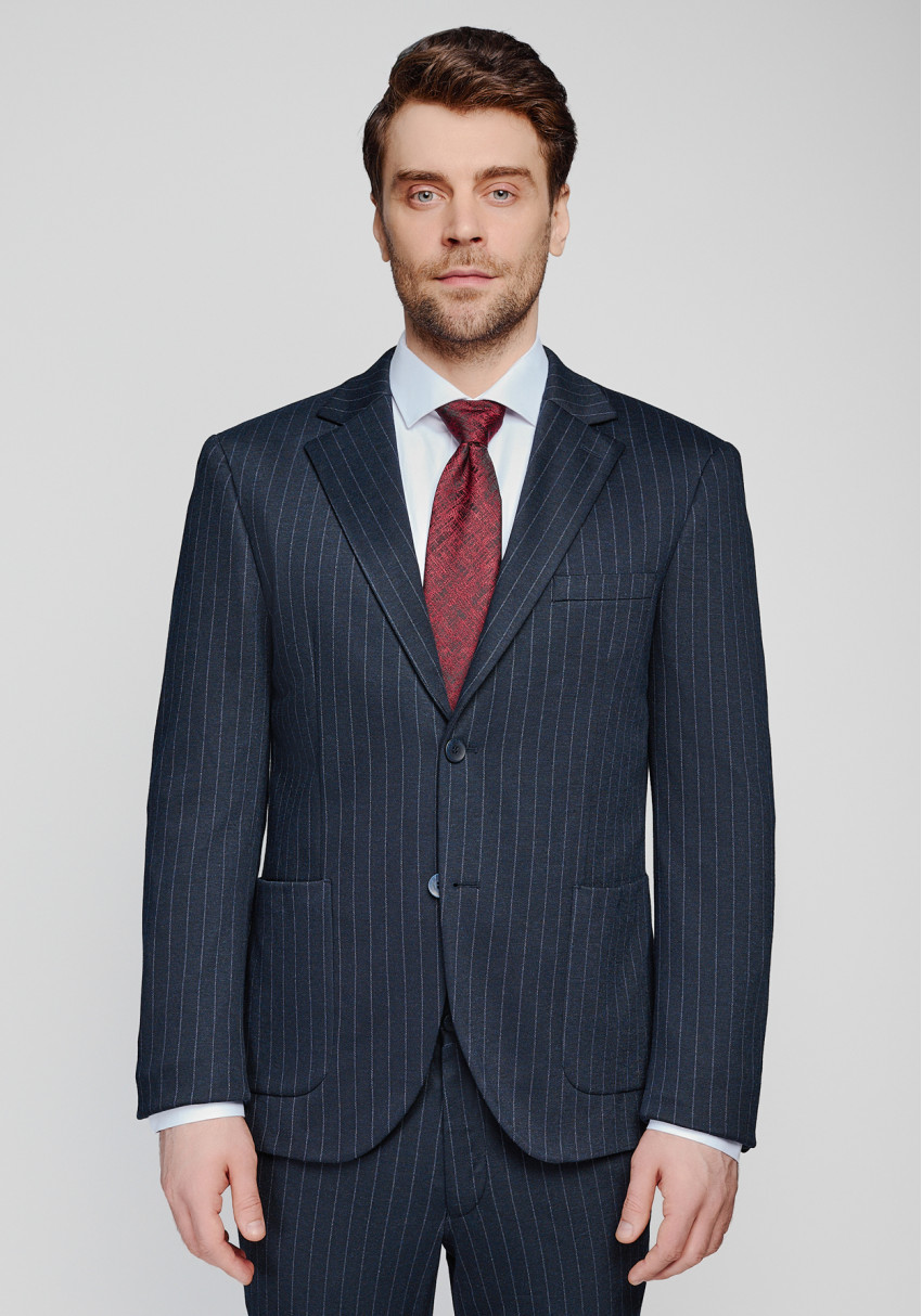 КЛАСИЧНИЙ ЧОЛОВІЧИЙ КОСТЮМ ТЕМНО-СИНІЙ В СМУЖКУ