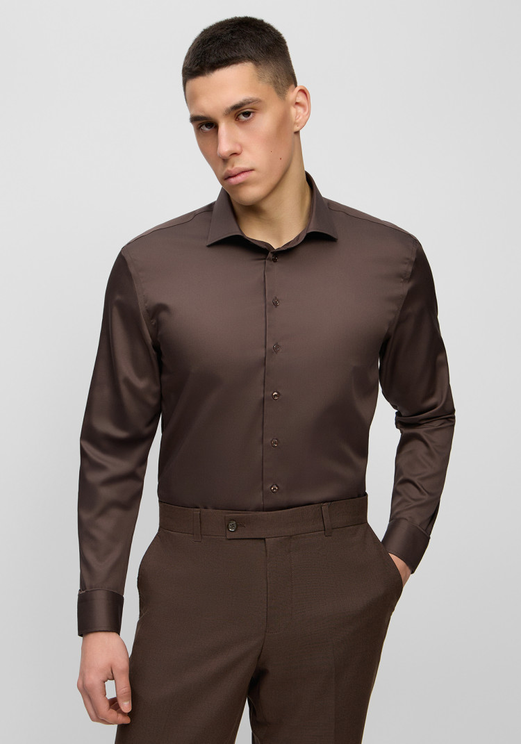 Класична чоловіча сорочка темно-коричнева нон-айрон
