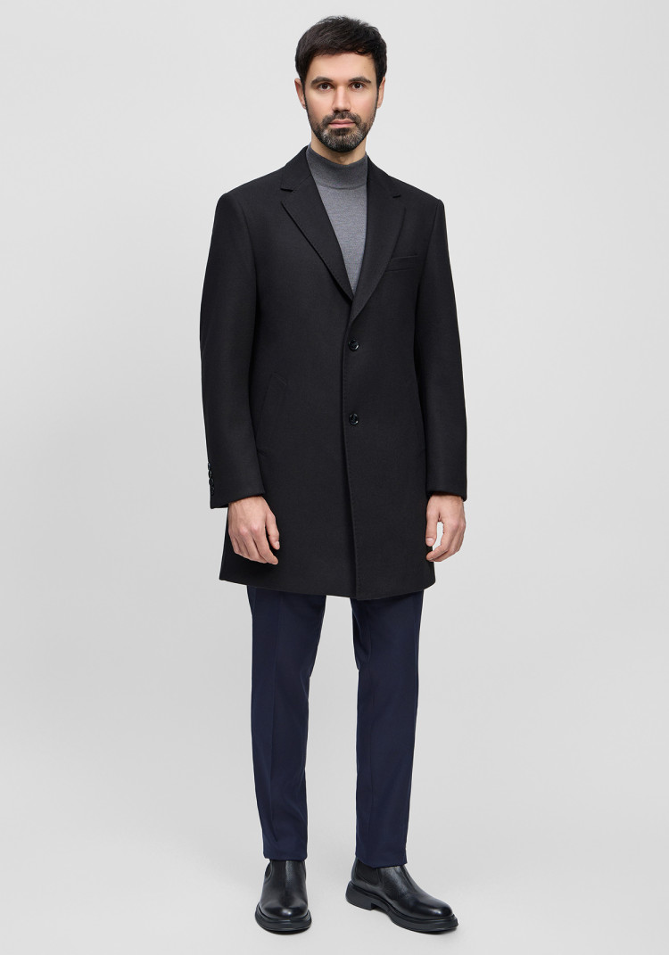 КЛАСИЧНЕ ЧОЛОВІЧЕ ПАЛЬТО ОДНОТОННЕ ЧОРНЕ