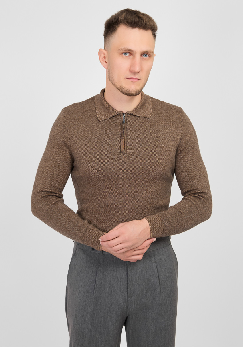 КЛАСИЧНЕ ЧОЛОВІЧЕ ПОЛО ДОВГИЙ РУКАВ ТЕМНО-КОРИЧНЕВЕ