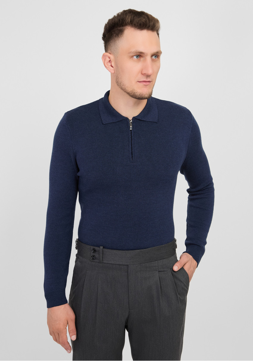 КЛАСИЧНЕ ЧОЛОВІЧЕ ПОЛО ДОВГИЙ РУКАВ ТЕМНО-СИНЄ