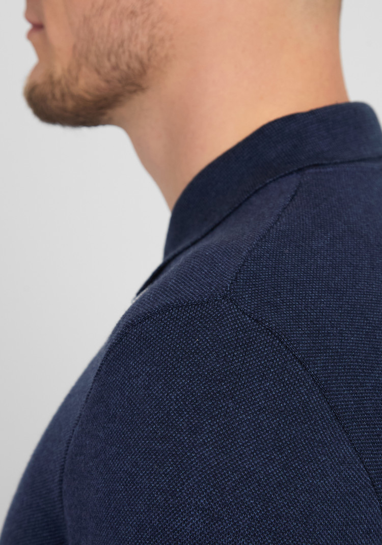 Темно-синій колір робить це поло універсальним у поєднанні з іншими елементами твоєї шафи. Спробуй носити його з класичними штанами або джинсами і ти не прогадаєш. Ще один стильний варіант - додати улюблений піджак у комплекті.