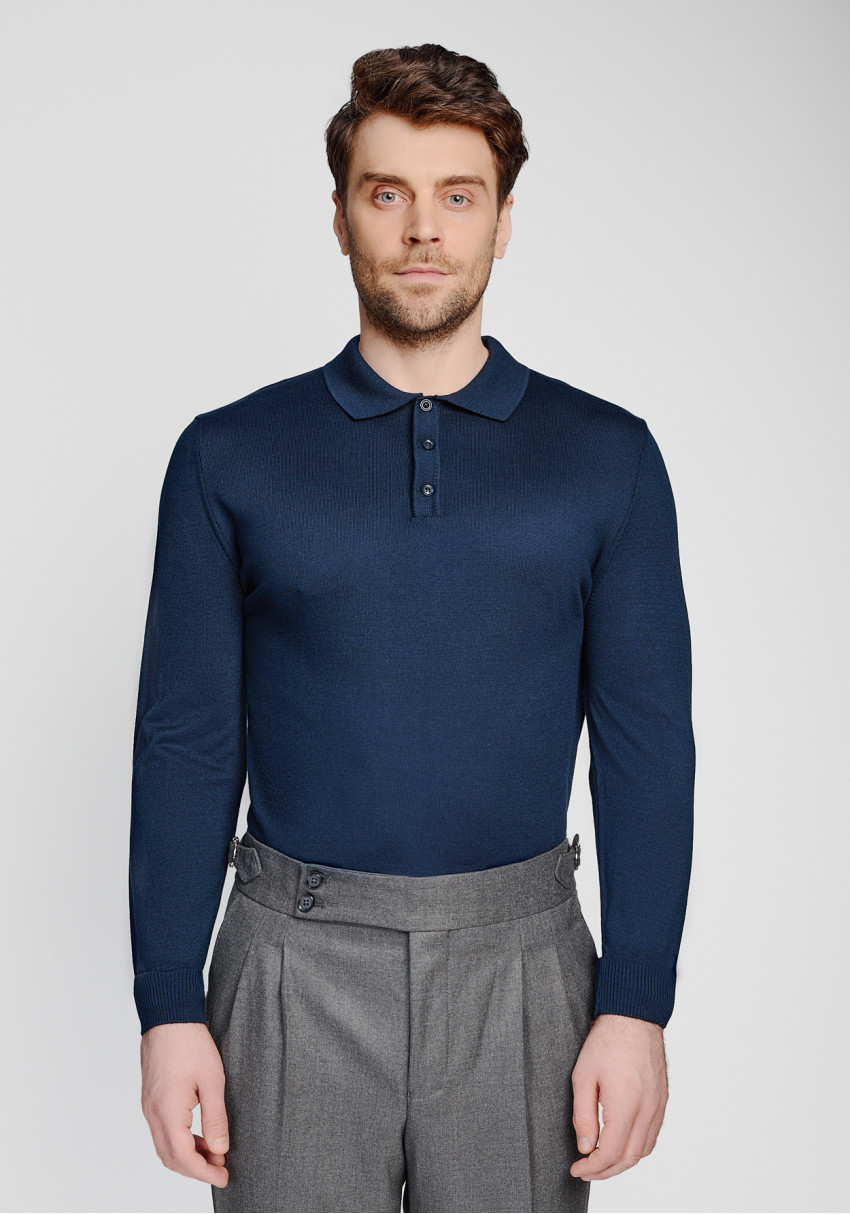 КЛАСИЧНЕ ЧОЛОВІЧЕ ПОЛО ТЕМНО-СИНЄ ДОВГИЙ РУКАВ