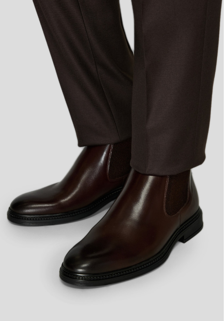 Чоловічі коричневі челсі - елегантний вибір. Ці шкіряні чоботи з характерними еластичними боковинами комбінують зручність і стиль. Ідеально підходять до костюмів і денного вбрання, додаючи образу дозу класики та вишуканості.