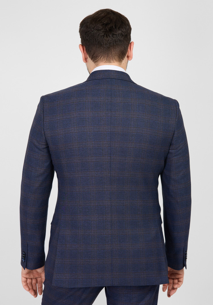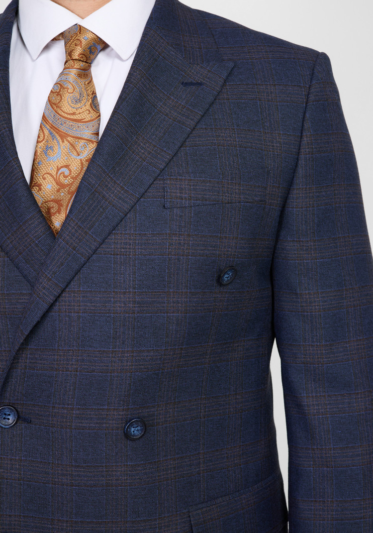 Темно-синій колір в клітинку та гострий лацкан не залишать тебе без уваги на вечірці або діловій зустрічі. Із притальним кроєм цей костюм підкреслить сильні сторони твоєї фігури. Щоб створити дійсно стильний образ, спробуй скомбінувати його з білою сорочкою і класичними чорними лоферами.