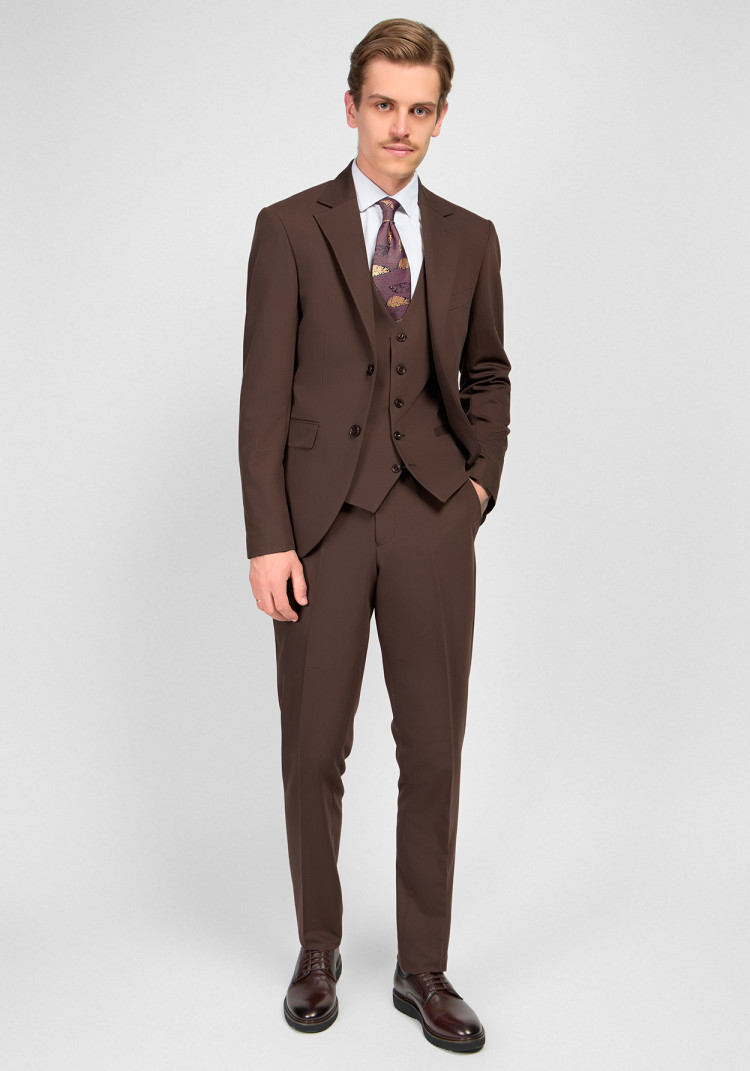 КЛАСИЧНИЙ ЧОЛОВІЧИЙ КОСТЮМ ТРІЙКА КОРИЧНЕВИЙ ОДНОТОННИЙ