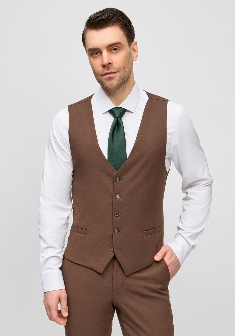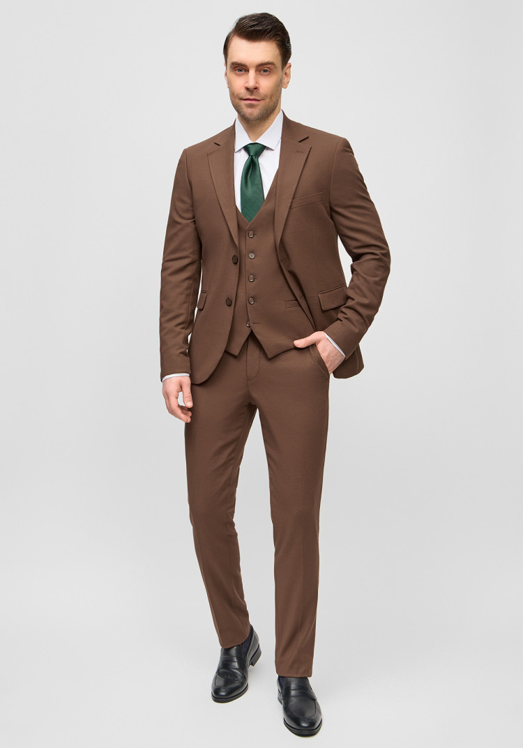 КЛАСИЧНИЙ ЧОЛОВІЧИЙ КОСТЮМ ТРІЙКА КОРИЧНЕВИЙ ОДНОТОННИЙ