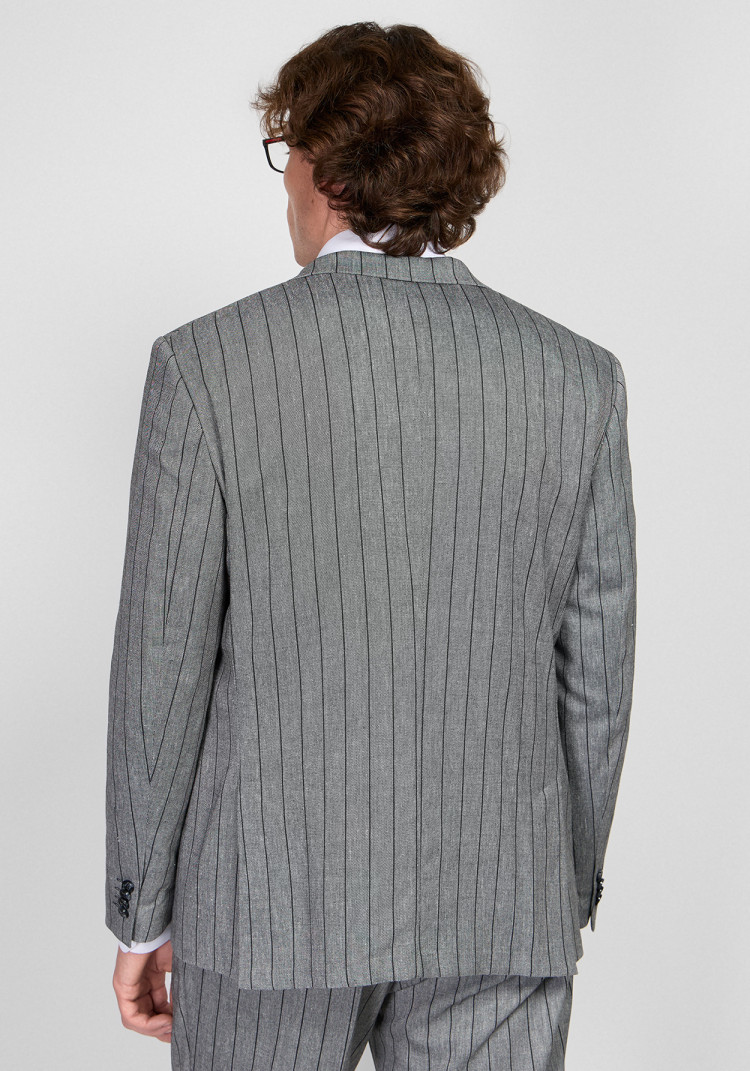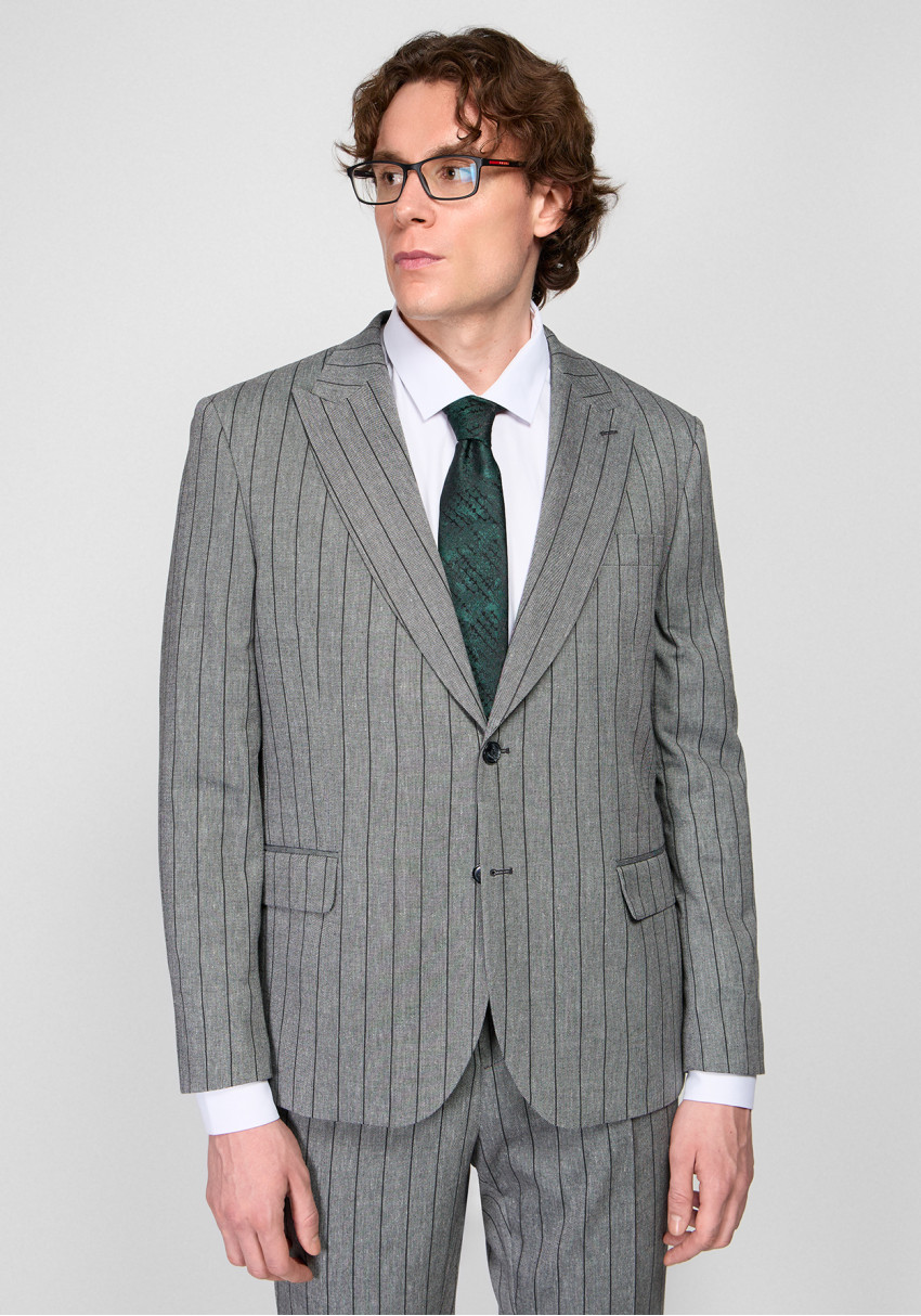 КЛАСИЧНИЙ ЧОЛОВІЧИЙ КОСТЮМ ОДНОБОРТНИЙ СІРИЙ В СМУЖКУ