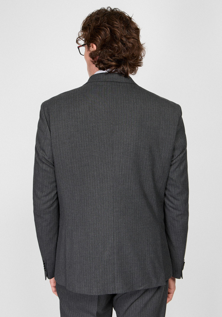 Співзвучний з офіційною обстановкою, він легко поєднується з класичними шкіряними дербі і білою сорочкою. Темно-сіра смужка надає особливий шарм, а прямокутний лацкан додає строгість. Спробуй доповнити образ чорним ременем та годинником на шкіряному ремінці - точно не залишишся непоміченим.