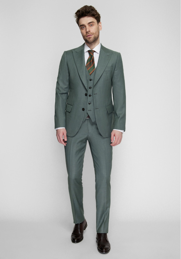 КЛАСИЧНИЙ ЧОЛОВІЧИЙ КОСТЮМ ТРІЙКА СВІТЛО-ЗЕЛЕНИЙ ОДНОТОННИЙ
