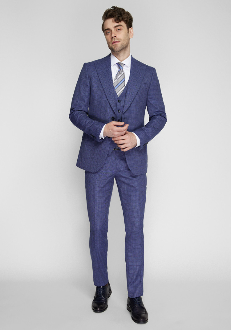 КЛАСИЧНИЙ ЧОЛОВІЧИЙ КОСТЮМ ТРІЙКА СИНІЙ ФАКТУРНИЙ
