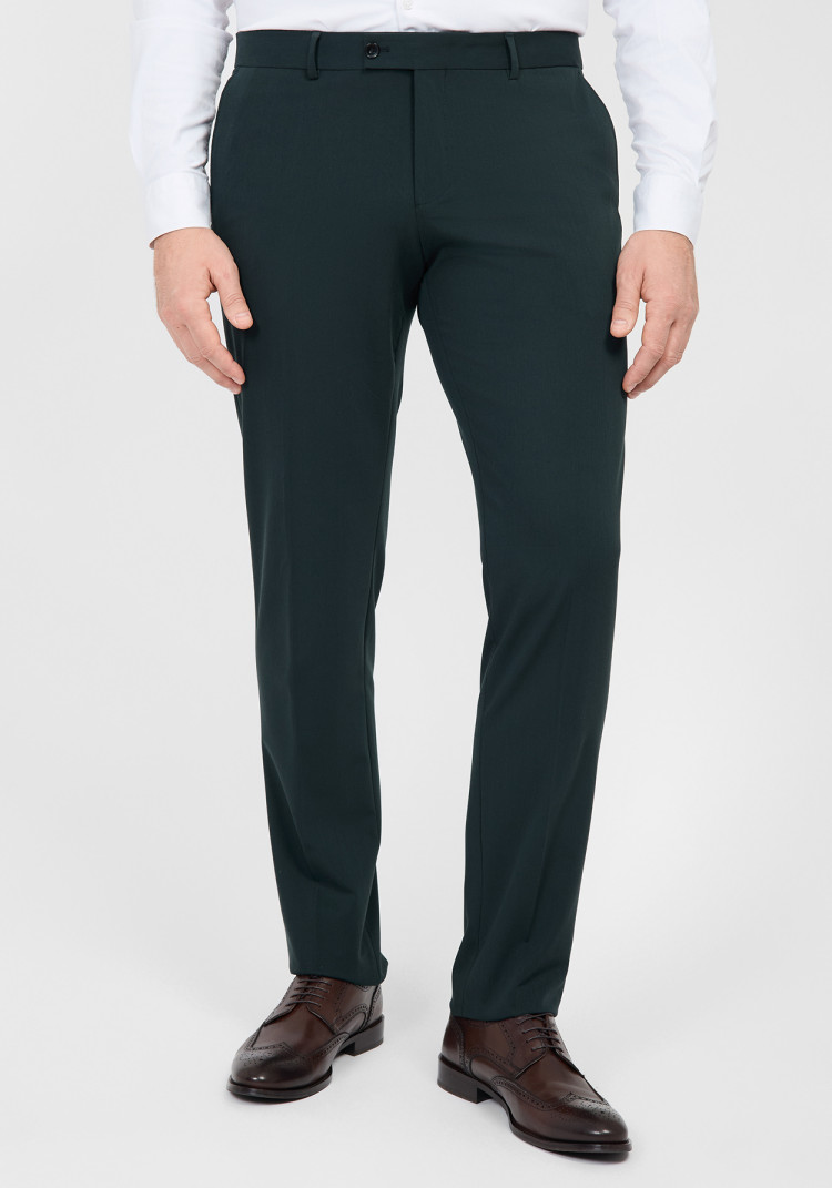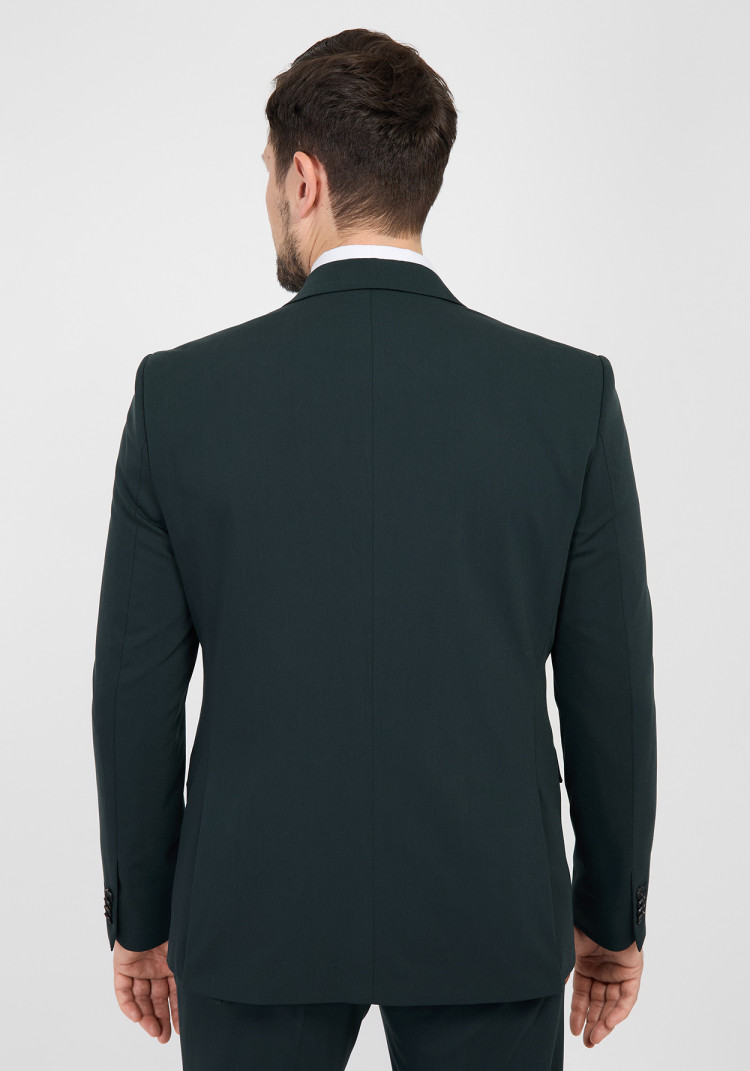 Цей зелений костюм зі вставками з вовни, поліестеру, віскози та еластану підійде для будь-якої пори року. Приталений крій з гострим лацканом і кишенями з клапанами робить його класикою, яка не виходить з моди.