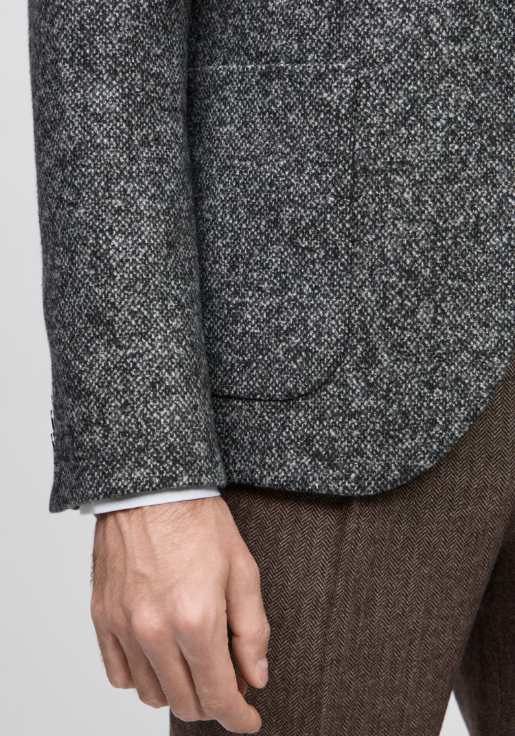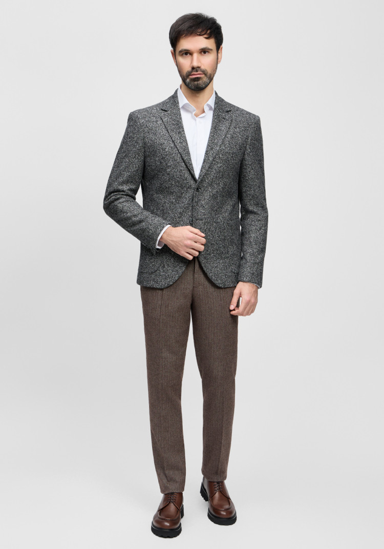 Приталений крій з однобортною застібкою підкреслює силует, прямокутний лацкан додає шарму, а накладні кишені додають функціональності. Дизайн піджака дозволяє йому гармонійно поєднуватися з класичними брюками или навіть джинсами для більш кежуал образу. Додайте сорочку та шкіряні лофери й отримайте завершений образ.