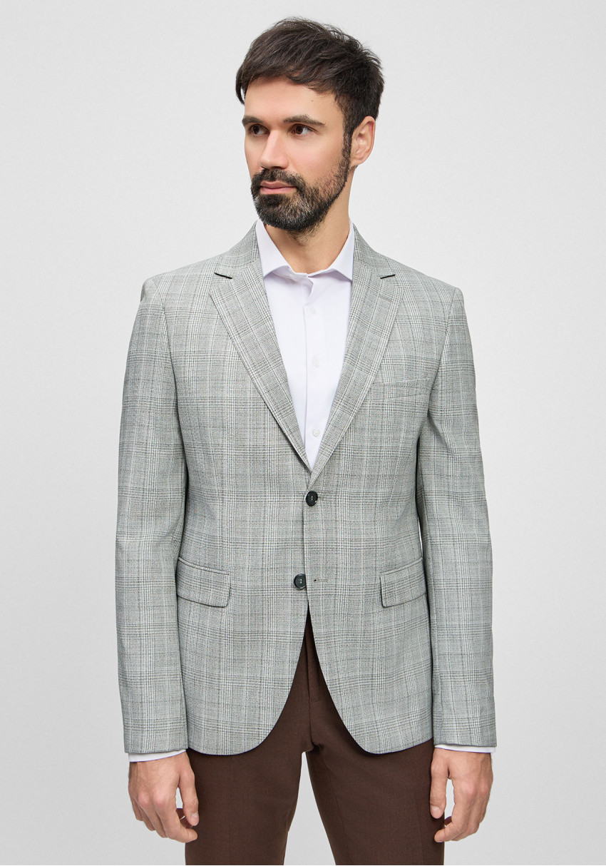КЛАСИЧНИЙ ЧОЛОВІЧИЙ ПІДЖАК СІРИЙ В ЗЕЛЕНУ КЛІТИНКУ
