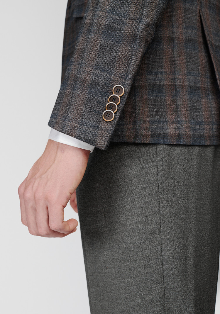 Цей піджак стане чудовим вибором для ділової зустрічі або романтичної вечері. Комір з прямокутними лацканами і кишені з клапанами додають класичності, а клітинка дарує сучасний шарм. Спробуй поєднати його з хакі чи сірими брюками та білою сорочкою для елегантного вигляду.