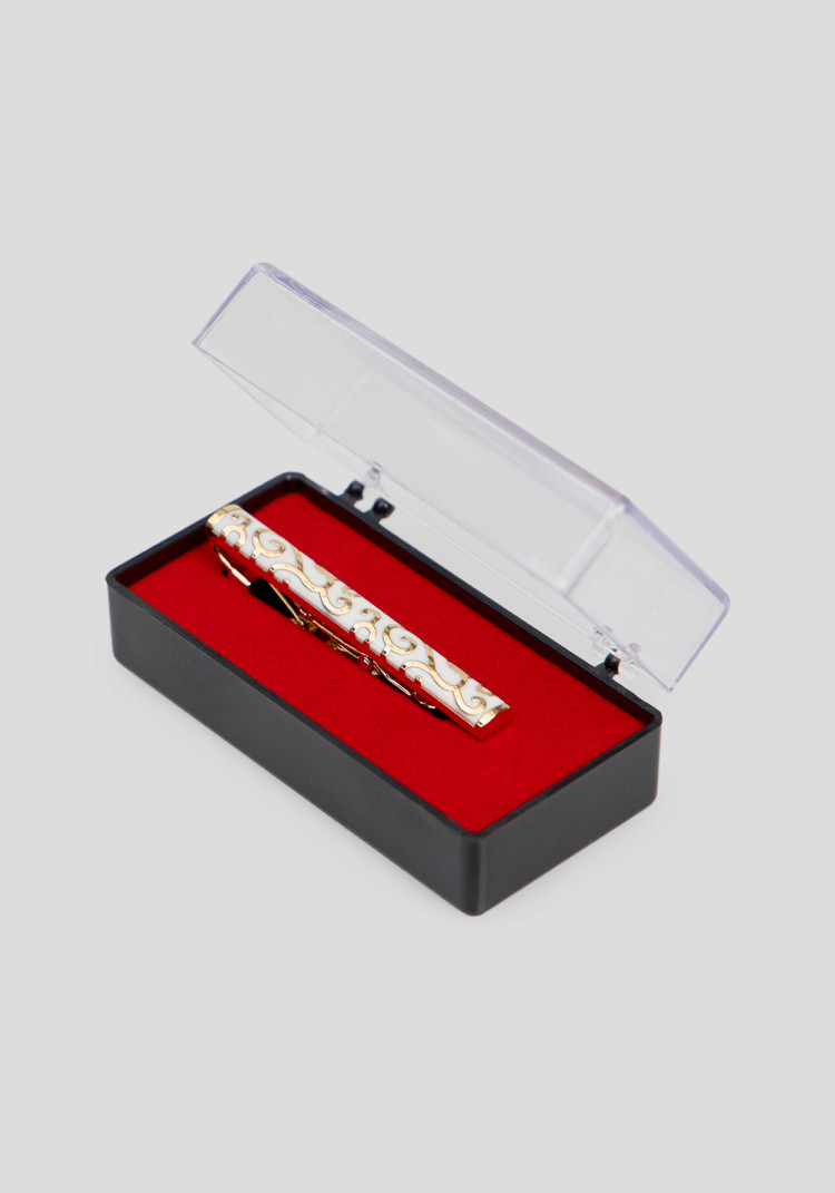 Затискач для краваток від YARMICH - це та деталь, яка вдало доповнює твій образ, коли справа заходить про важливу зустріч, ділові переговори чи навіть весілля. Цей класичний аксесуар білого кольору з принтом з легкістю впишеться в будь-який сезон і стане чудовим акцентом у твоєму гардеробі.