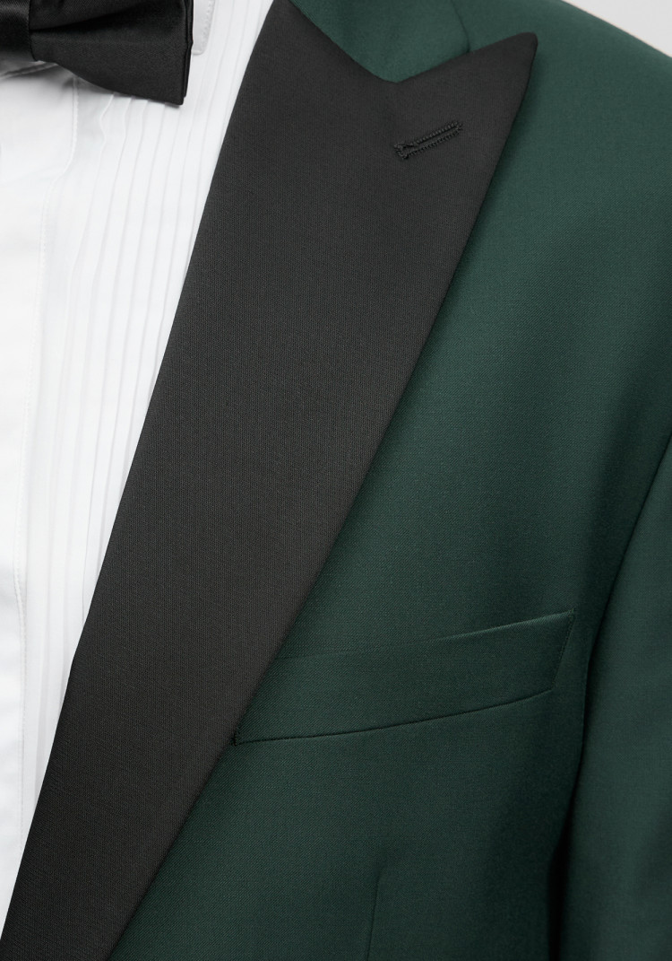 Класичний чоловічий смокінг зелений з чорним лацканом