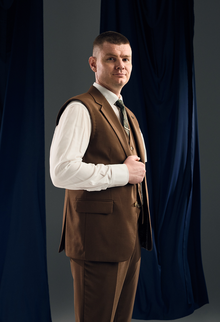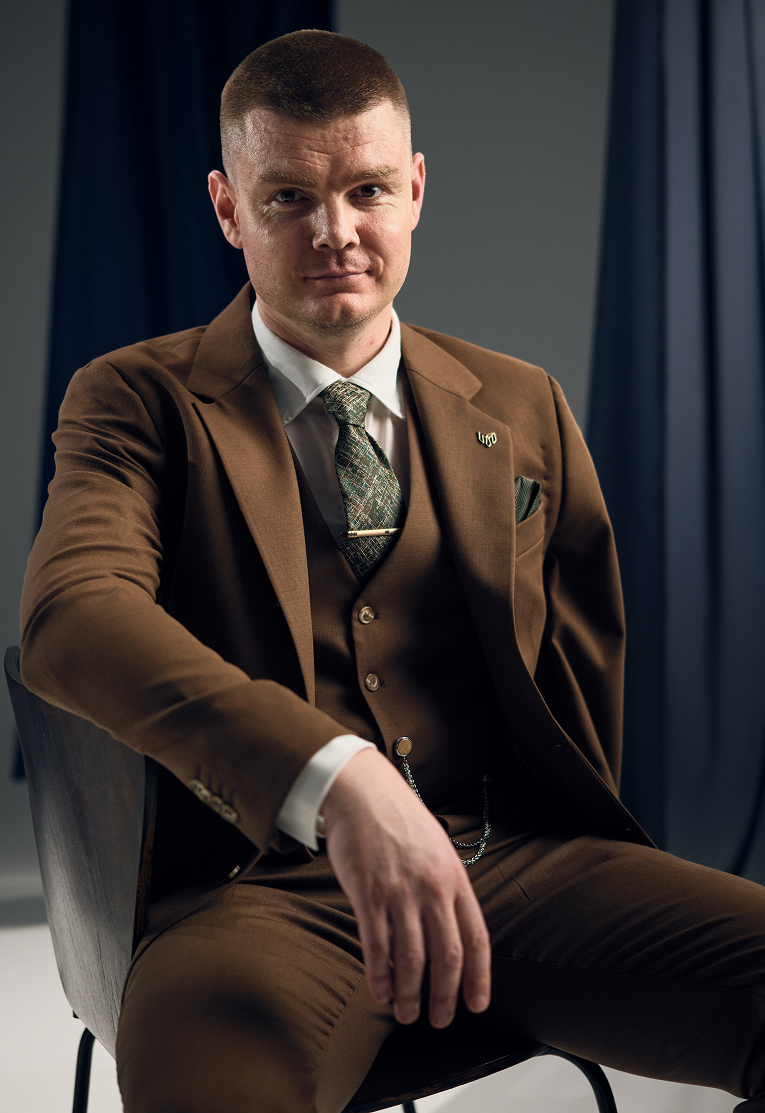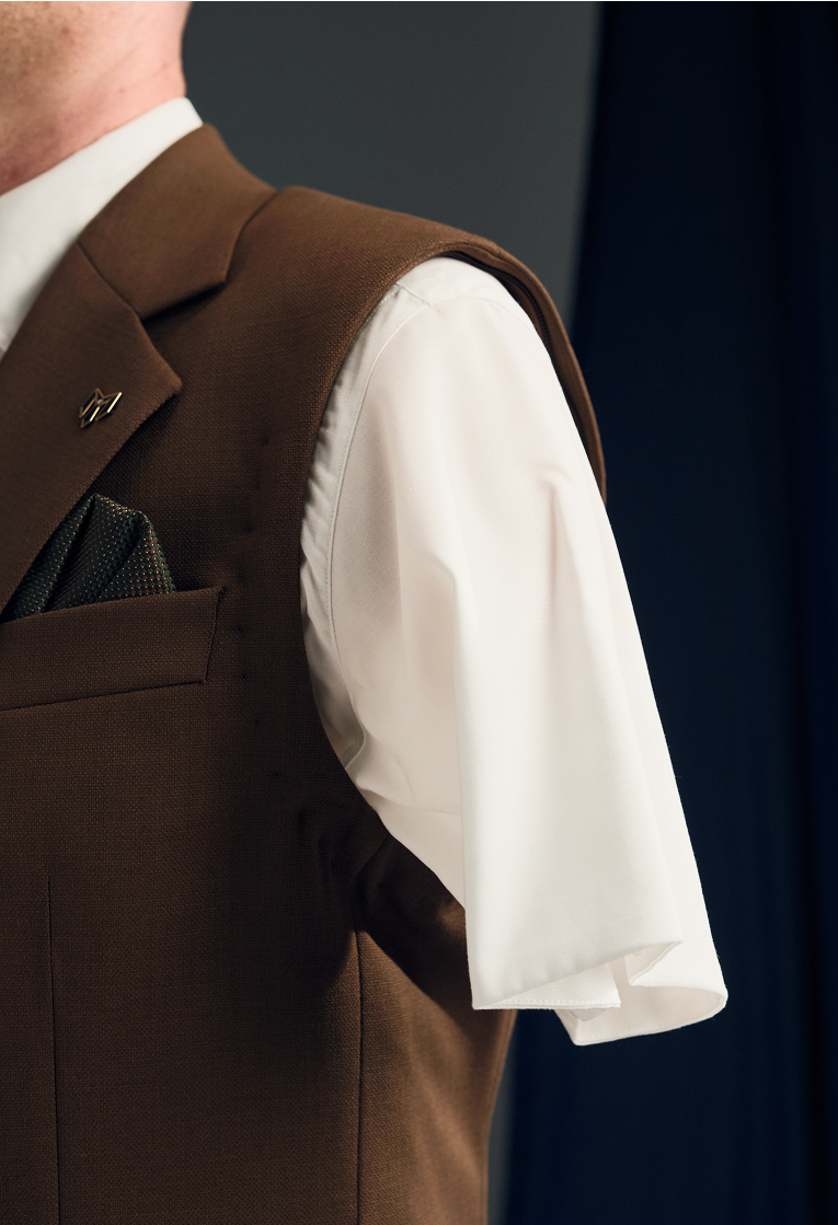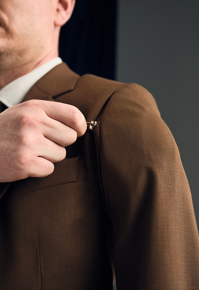 Окрім піджака, майстри подбали й про сорочку для Станіслава. Лівий рукав сорочки був спеціально скорегований для оптимальної посадки та свободи рухів, тепер сорочка не заважає роботі протеза і комфортна в носінні. Важливо, що ці корекції майже непомітні сторонньому оку: класичний силует, акуратність швів і зовнішній вигляд сорочки залишилися без змін. Станіслав може носити цей одяг щодня або на урочисті події, почуваючись упевнено.