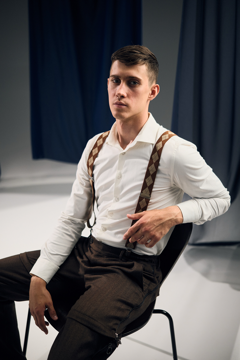 Для Павла було розроблено спеціальні функціональні брюки, які враховують особливості носіння протеза. Ліва штанина цих брюк розстібається збоку на всю довжину - це дозволяє легко вдягати й фіксувати протез без зайвих зусиль. До того ж, нижню частину лівої штанини можна за потреби відстібнути, перетворивши брюки на шорти. Така адаптивність дає Павлові свободу в різних умовах: він однаково зручно почувається і під час тренувань, і у повсякденному житті. При цьому штани зберігають свій класичний силует та стильний вигляд, на перший погляд і не скажеш, що в них є особливі елементи. Павло отримав змогу носити елегантний одяг, який ні в чому його не обмежує, а навпаки підкреслює його впевненість та життєву енергію.