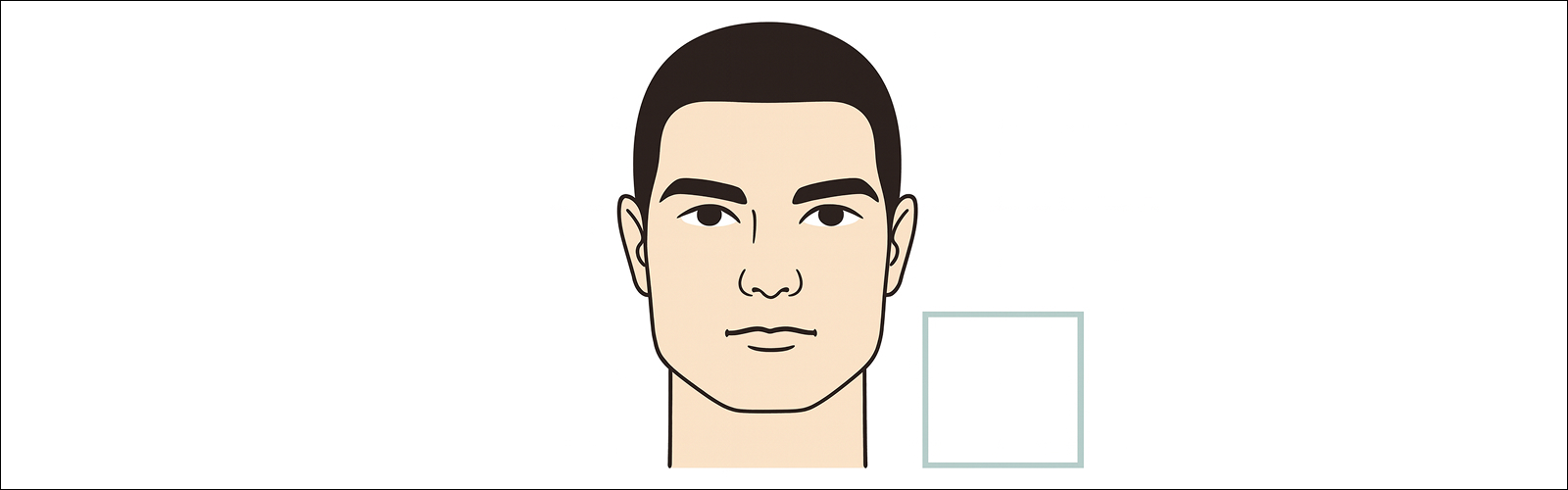 Квадратний тип вирізняється широким підборіддям, сильною щелепою, широким чолом та загалом різкішими кутами. Лінія обличчя приблизно рівна по довжині і ширині, але має кутасті обриси. Такі пропорції виглядають мужньо, проте окуляри покликані трохи пом’якшити гострі риси і врівноважити пропорції.